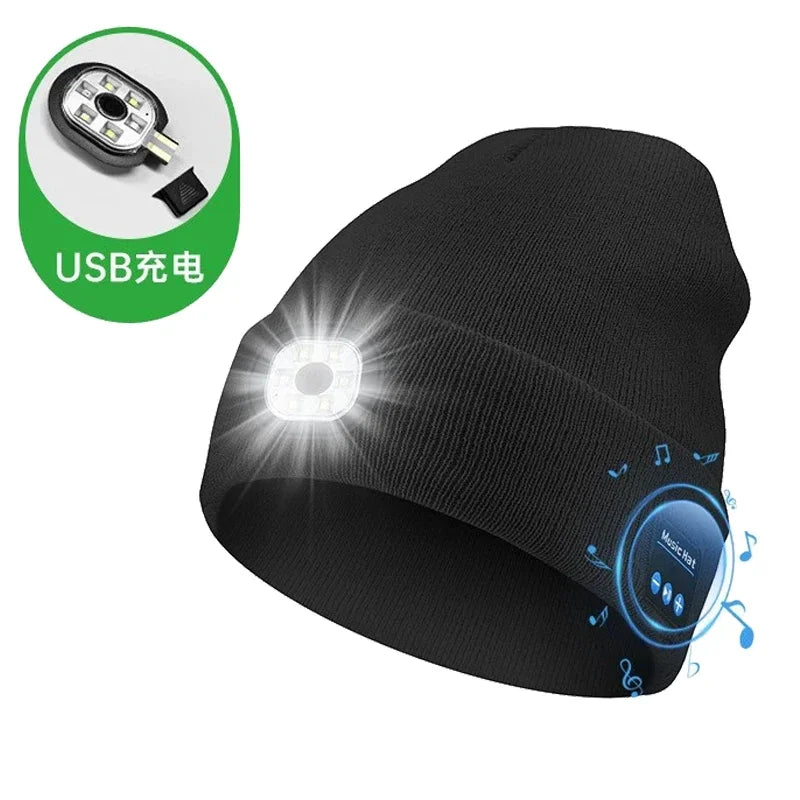 Beanie Bluetooth Wireless Stereo Headset Fashion Warm LED Hat Rechargeable Music Player With MIC Support Dimming LED Light