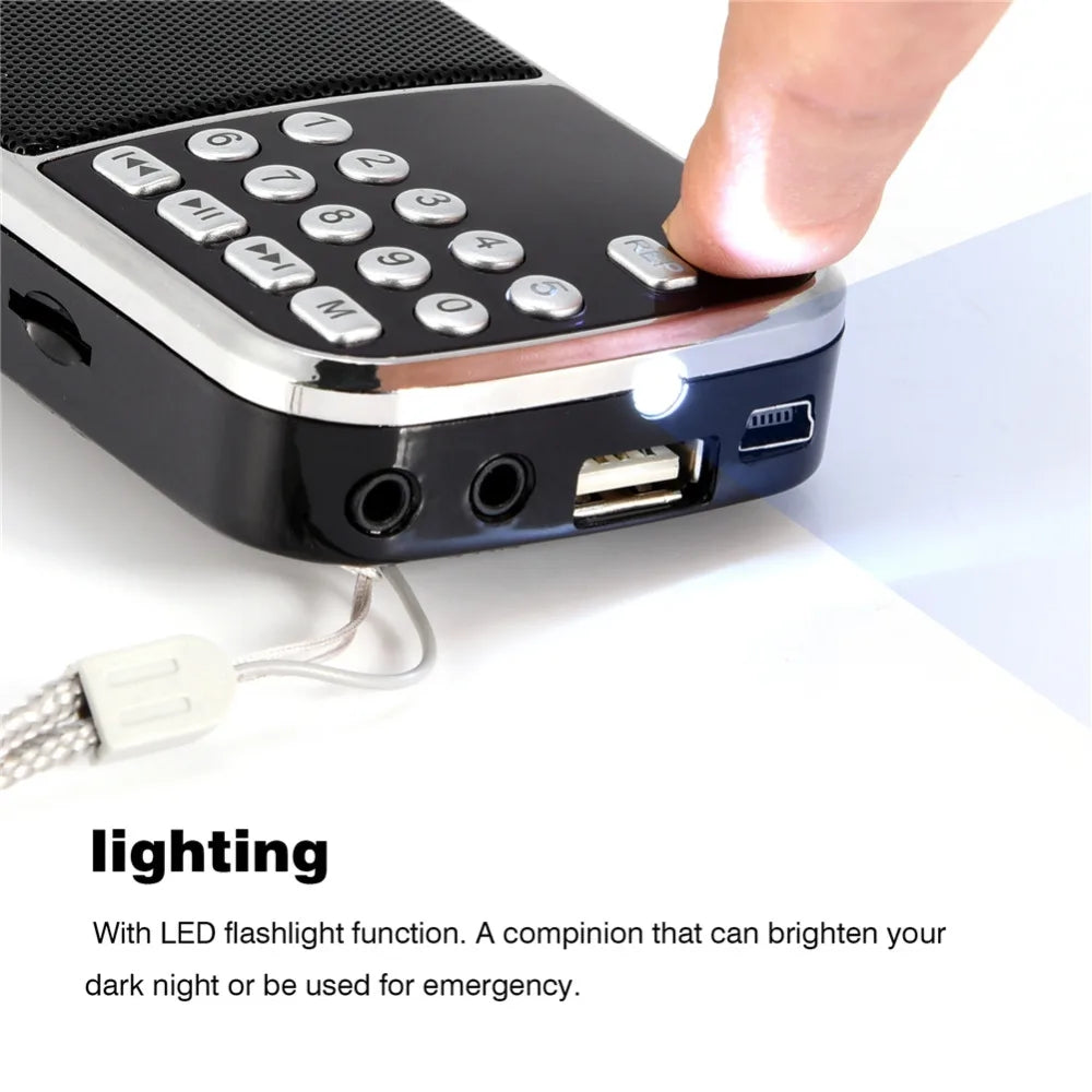 Portable Mini Speaker MP3 Audio Player Micro SD AUX TF FM Radio HIFI Amplifier Led Flashlight