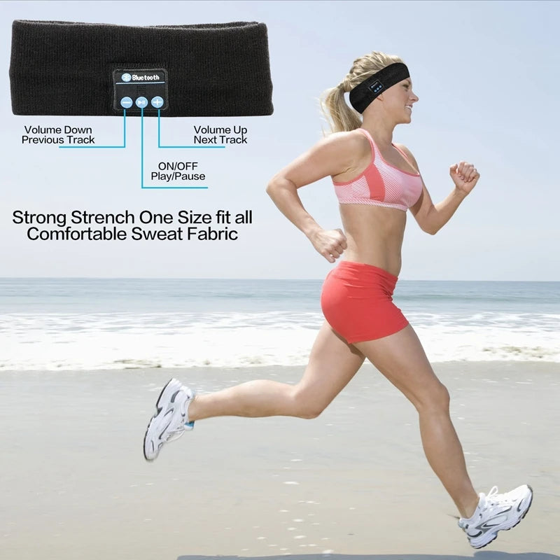 Wireless Stereo Bluetooth 5.0 Headphones Running Sleeping Earphone Headset Knit Sports Music Headband Eye Mask With MIC